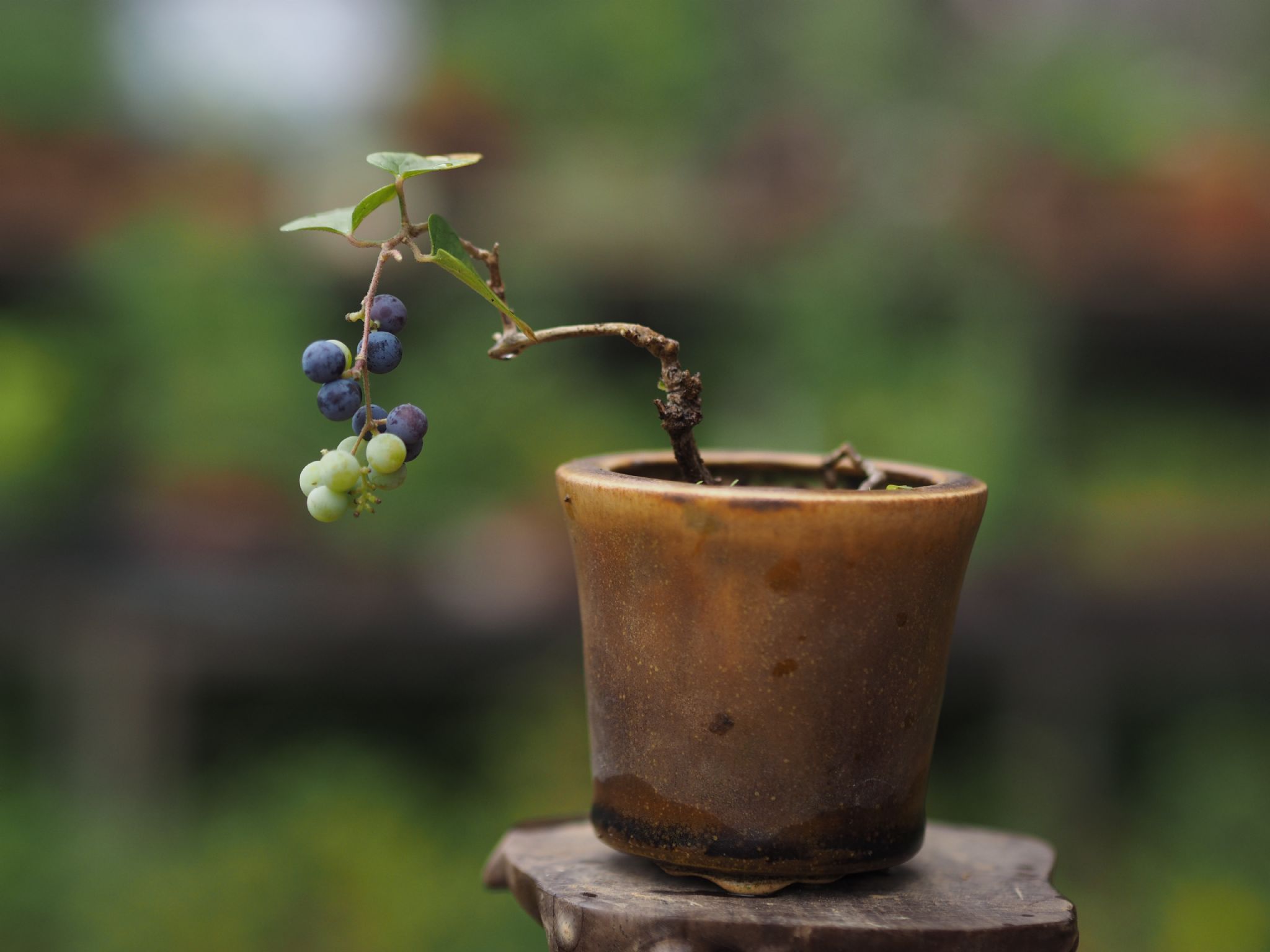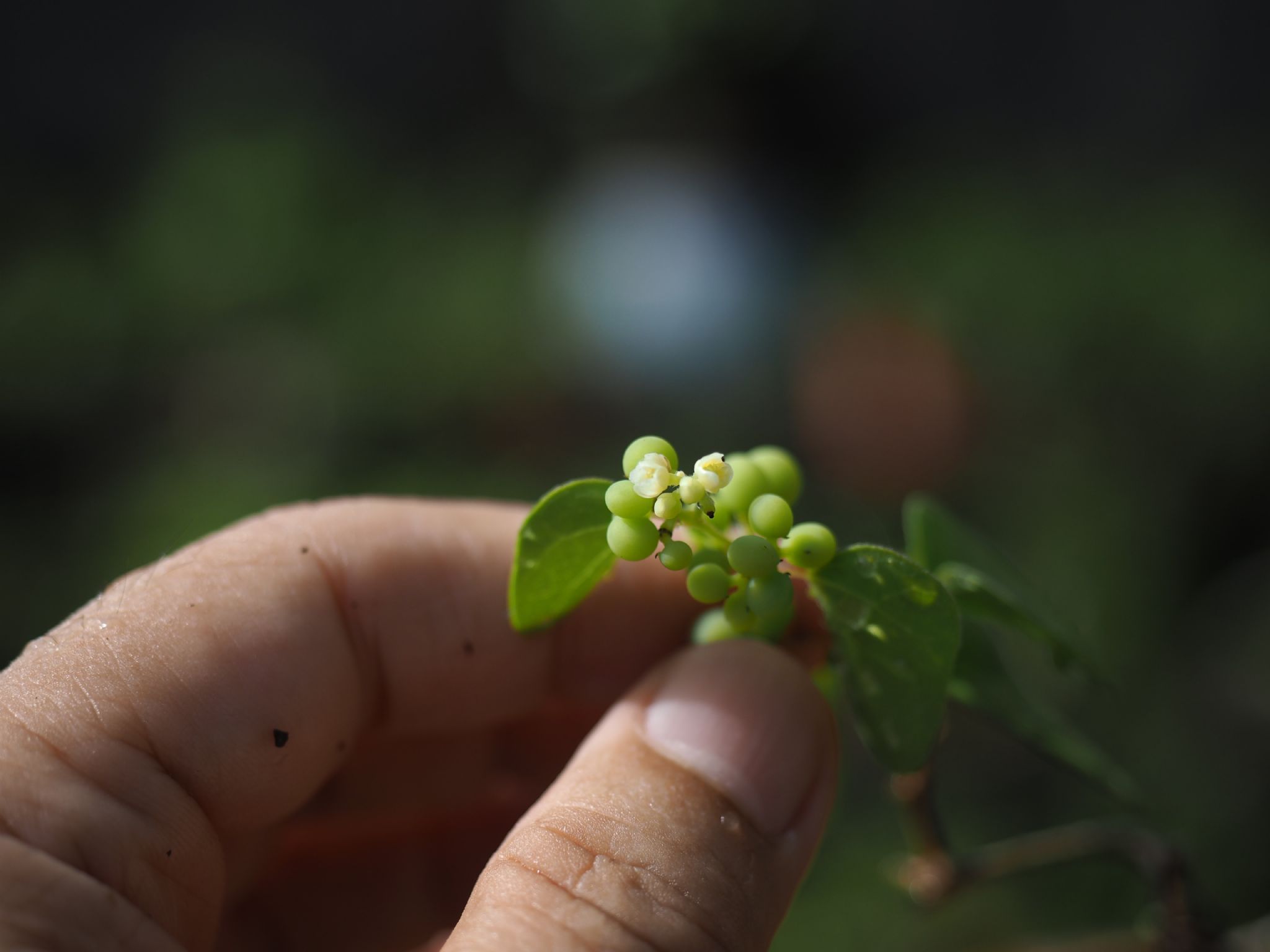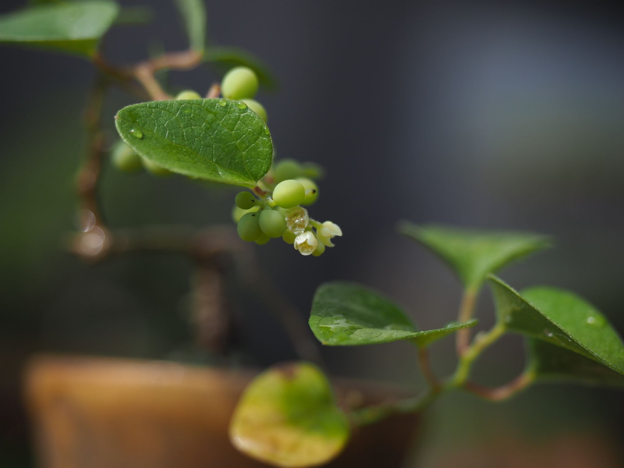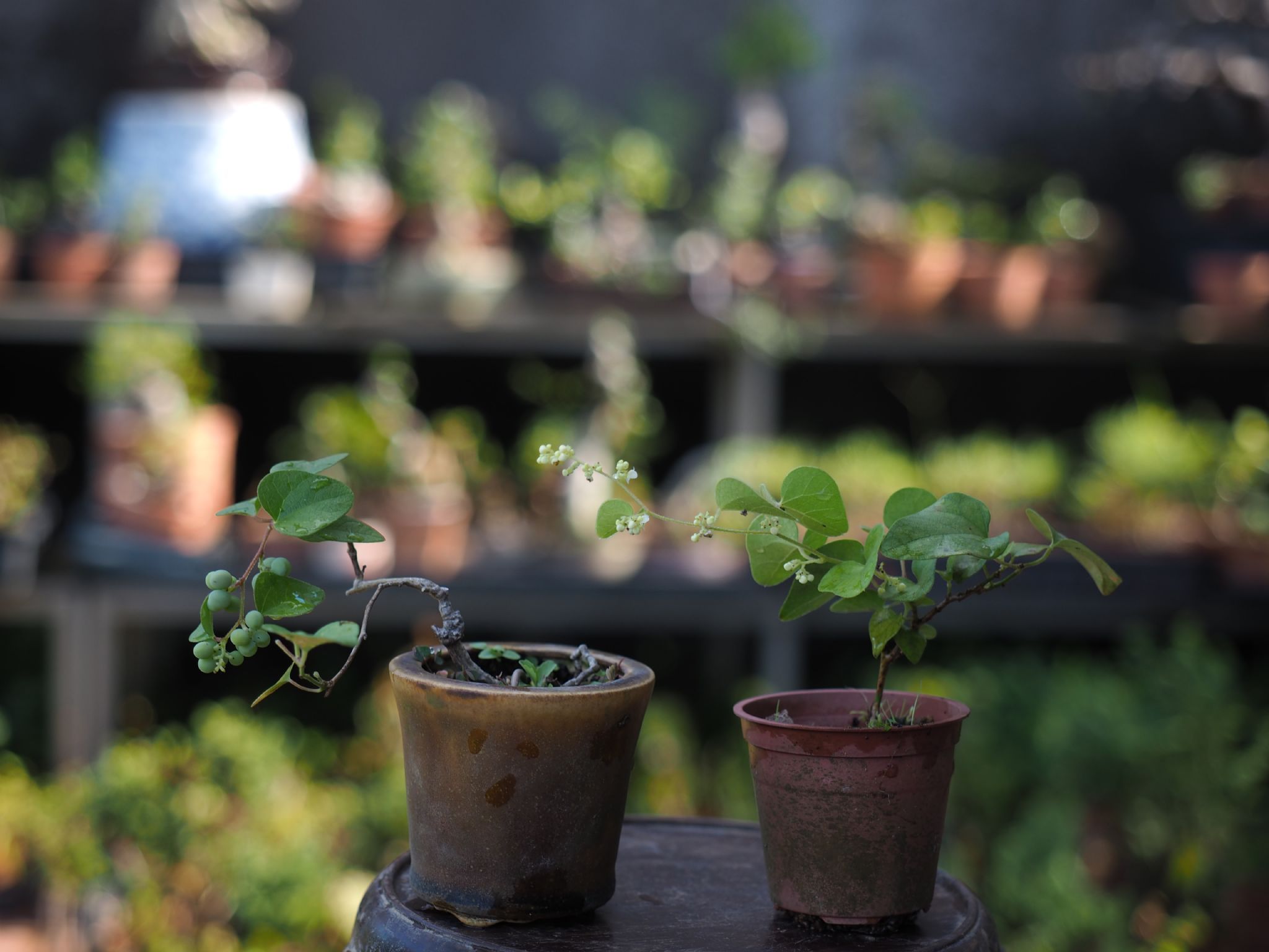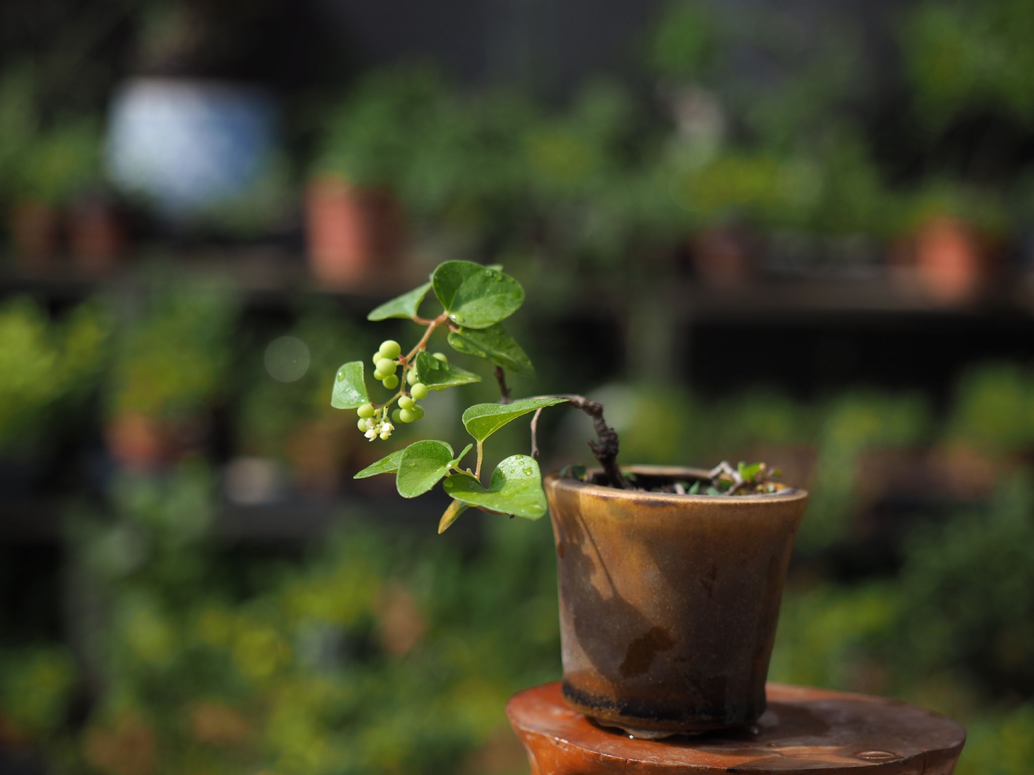 木防己(日文樹名青葛藤),盛夏(7~8月)開花結果,有公株母株之分, 需授粉母株才會結果,掛果期約一個月,果熟後呈藍色,有毒勿食,春季阡插一年枝可活,蔓藤常需修剪,六月前修剪之後放著即會開花,公母株一起放置授粉,很好的豆型盆栽樹種!